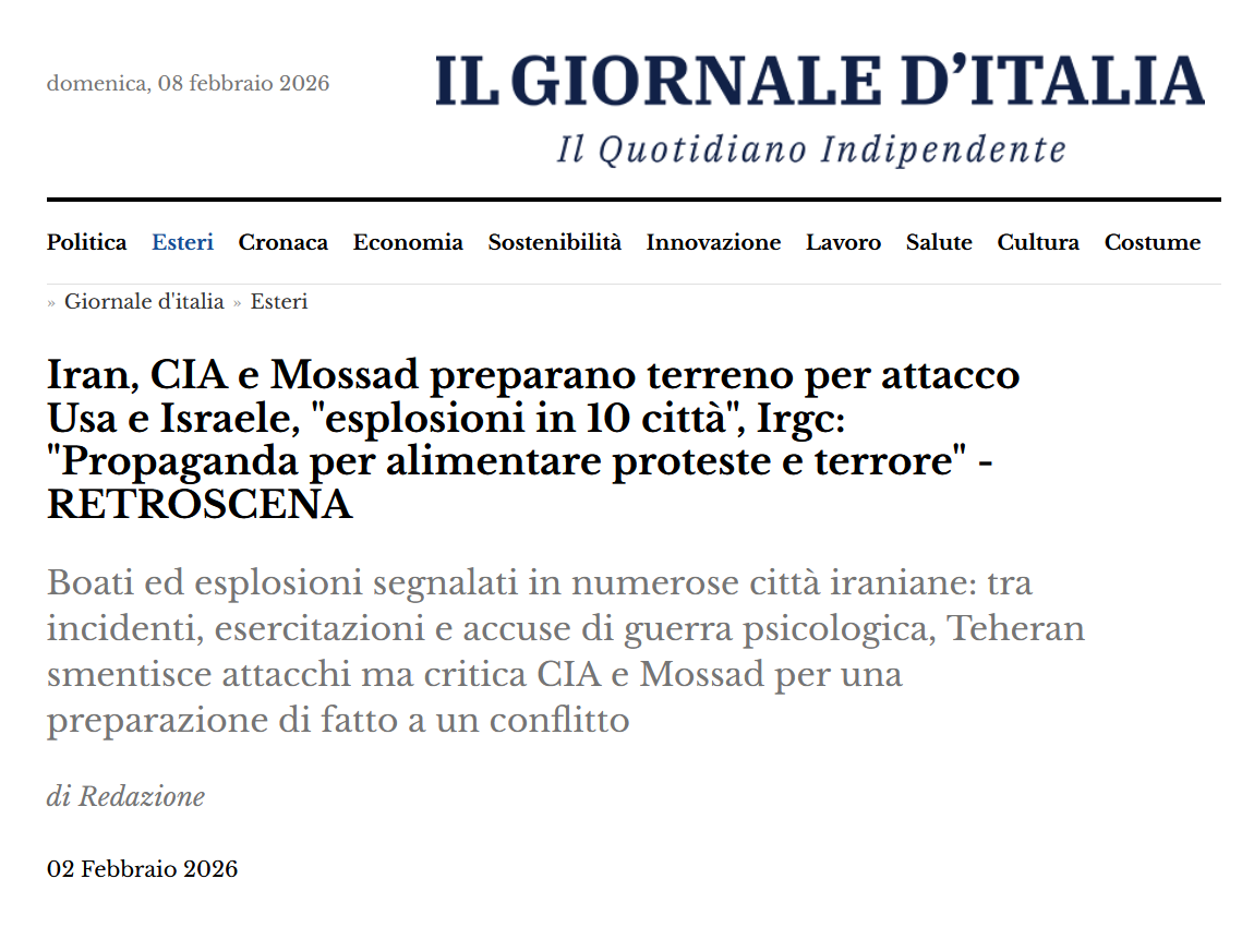 Evidenzio : ''Grazie all'energia nucleare, le navi sono in grado di operare per oltre 20 anni senza rifornimento e si prevede che abbiano una vita utile di oltre 50 anni.'' 1.1 Nel particolare, la USS “Abraham Lincoln” è stata varata il 13 febbraio 1988 ed è entrata in servizio il 11 novembre 1989, ''il suo porto di origine è la NAS North Island, San Diego, California; è membro della Flotta del Pacifico degli Stati Uniti. È amministrativamente responsabile del Comandante delle Forze Aeree Navali del Pacifico e operativamente funge da nave ammiraglia del Carrier Strike Group 3 e ospita il Carrier Air Wing Nine'' [7]. Spiegando : ● il Carrier Strike Group 3 ( sigla : CSG-3; trad. : Gruppo d'attacco della portaerei n. 3 ) è un gruppo d'attacco della Marina degli USA, parte della Flotta del Pacifico e guidato dalla “Abraham Lincoln” ( CVN-72 ); come forza di proiezione di potenza, include il Carrier Air Wing Nine ( CVW-9 ) e il Destroyer Squadron 21 ( DESRON 21 ), operando globalmente per la sicurezza marittima e la deterrenza [8]; ● il Carrier Air Wing Nine ( CVW-9 ) è uno stormo aereo imbarcato dalla Marina degli USA, composto da 8 squadriglie di aeromobili ( che operano, tra gli altri, i caccia multiruolo F/A-18E/F Super Hornet ed F-35C Lightning II ), basato presso la Naval Air Station Lemoore ( contee di Fresno e Kings, California ) e attualmente assegnato alla “Abraham Lincoln”; gli aeromobili dello stormo sono identificati dal codice di coda "NG", e forniscono la potenza d'attacco e la superiorità aerea ( offensiva e difensiva ) al CSG-3 [9]; ● il Destroyer Squadron 21 ( DESRON 21 ), soprannominato "Rampant Lions", è una squadriglia di cacciatorpediniere della Marina degli USA basata a San Diego e parte del CSG-3; è storicamente nota per essere stata la più decorata della Seconda Guerra Mondiale nel Pacifico, e oggi è specializzata in operazioni di scorta, anti-sommergibile e attacco { [10][11]... }. 1.2 A metà marzo del 2013, la USS “Abraham Lincoln” ha usufruito di una manutenzione profonda e completa, detta “rifornimento e revisione complessa” ( Refueling and Complex Overhaul, RCOH ), presso il cantiere navale dell'azienda costruttrice Newport News. Tra i lavori eseguiti per un totale di oltre 2,5M ore di lavoro : la sostituzione dell'àncora, il rifornimento dei reattori, l'aggiornamento delle infrastrutture della nave, la modernizzazione dei sistemi di combattimento e delle capacità delle squadriglie aeree per aumentarne l'efficacia in combattimento [12]. E' stata restituita alla flotta il 12 maggio 2017, e l'8 settembre è stata dispiegata assieme alla USS “Iwo Jima” e alla USS “New York” per fornire aiuti alla Florida dopo il disastro causato dall'uragano Irma [12]. 2 Mentre la CIA e il Mossad stanno ragionando da tempo su come bruciare le barbe ai sottanoni, nella giornata di sabato 31 gennaio ci sono state misteriose esplosioni, incendi, e boati in una decina di città iraniane, che l'esercito rivoluzionario ( IRGC ) ha subito bollato come iniziative dei servizi occidentali :