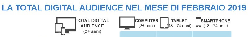 Il 17 aprile scorso Audiweb – la “Auditel del web” – ha distribuito i dati pubblici della total digital audience [ 1 ] italiana del mese di febbraio 2019 : [ 2 ].