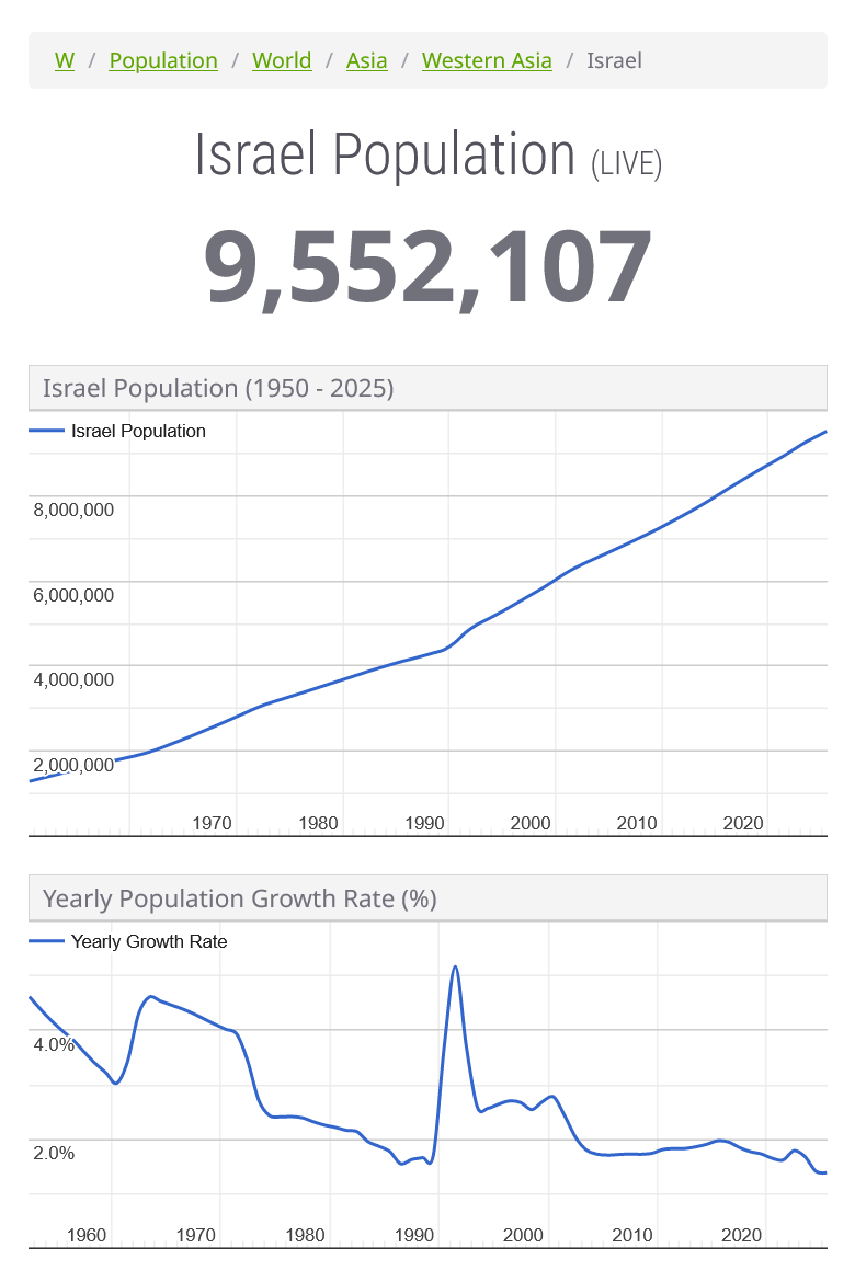[8] : ''Israel Population (LIVE)'', Worldometer, [ https://www.worldometers.info/world-population/israel-population/ ].