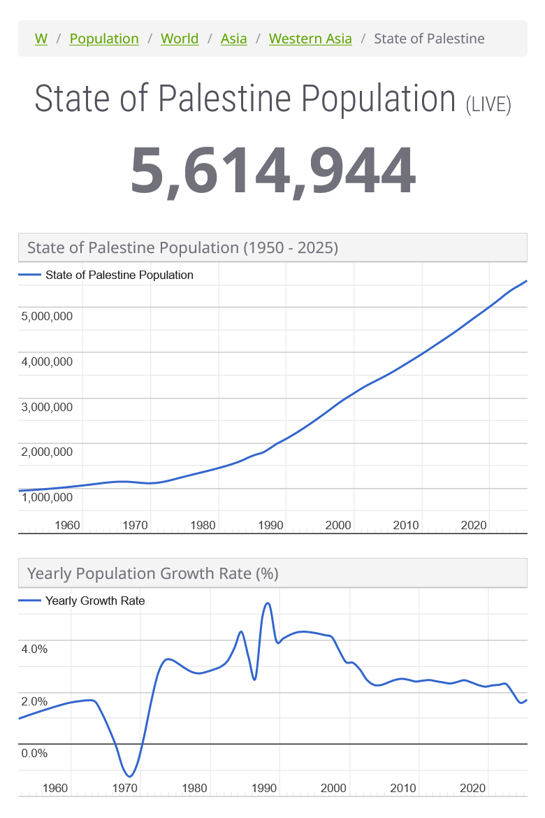 [9] : ''State of Palestine Population (LIVE)'', Worldometer, [ https://www.worldometers.info/world-population/state-of-palestine-population/ ].