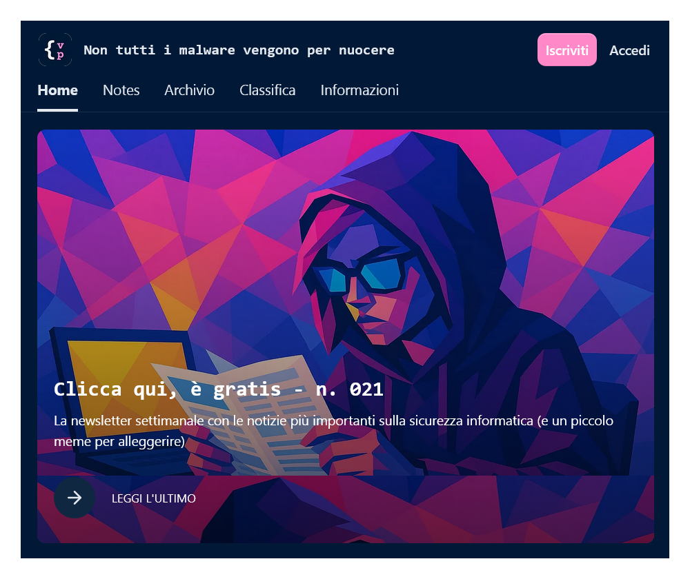 | Archivio di Marco Poli Veronica Paolucci { [1][2]... } è un'avvocatessa e imprenditrice di Cesenatico ( FC ) appassionata di cybersicurezza, tematica centrale nella sua attività professionale [3]. Cura l'ottimo canale ''Veronica Paolucci - Cybersecurity Specialist'' nel Tubo [4], sostanziato con video di vario livello dedicati a malware e vulnerabilità dei sistemi informatici, esseri umani inclusi ( l'anello più debole della catena ). Spiegazioni tecniche passo-passo estremamente chiare anche per i curiosi e i niubbi ( i novizi ), e narrazioni dei casi di cronaca da manuale altrettanto efficaci. Consiglio sia la fruizione del canale, che l'iscrizione alla newsletter [5]. = Note [1] : Veronica Paolucci, Facebook, [ https://www.facebook.com/veronica.paolucci ]; IN : [ https://www.linkedin.com/in/veronica-paolucci/ ]; SU : [ https://veronicapaolucci.substack.com/ ]; YT : [ https://www.youtube.com/@veronica.paolucci ]. [2] : Veronica Paolucci, Avvocato360, [ https://avvocato360.it/avvocati/veronicapaolucci ]; Preso all'asta : [ https://presoallasta.com/chi-sono/ ]; Sicurezza Urbana Integrata : [ https://sicurezzaurbanaintegrata.it/team-2-2/ ]. [3] : ''Chi è VERONICA PAOLUCCI? Rispondo alle vostre domande'', Veronica Paolucci - Cybersecurity Specialist, YouTube, 26 settembre 2025, [ https://www.youtube.com/watch?v=W336ZhF09OI ]. [4] : Veronica Paolucci - Cybersecurity Specialist, YouTube, [ https://www.youtube.com/@veronica.paolucci ]. [5] : Non tutti i malware vengono per nuocere, Substack, [ https://veronicapaolucci.substack.com/ ]. === --- { prima pubblicazione del post su VK, il 29 ottobre 2025 [6]; su FB : [7] }. |
