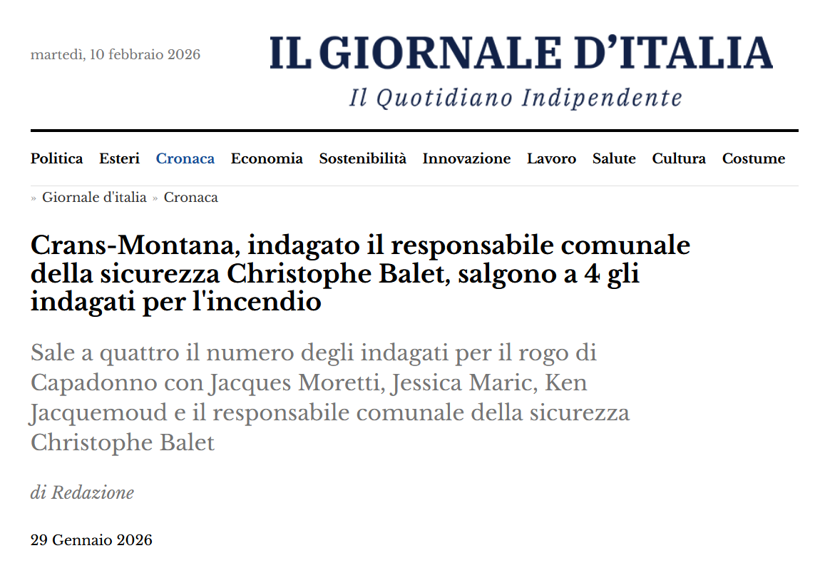 E il Corriere del Ticino ha compilato una lista di errori ed omissioni compiute dagli inquirenti nelle indagini sulla strage di Capodanno a Crans Montana [10]. 4 Quarto :